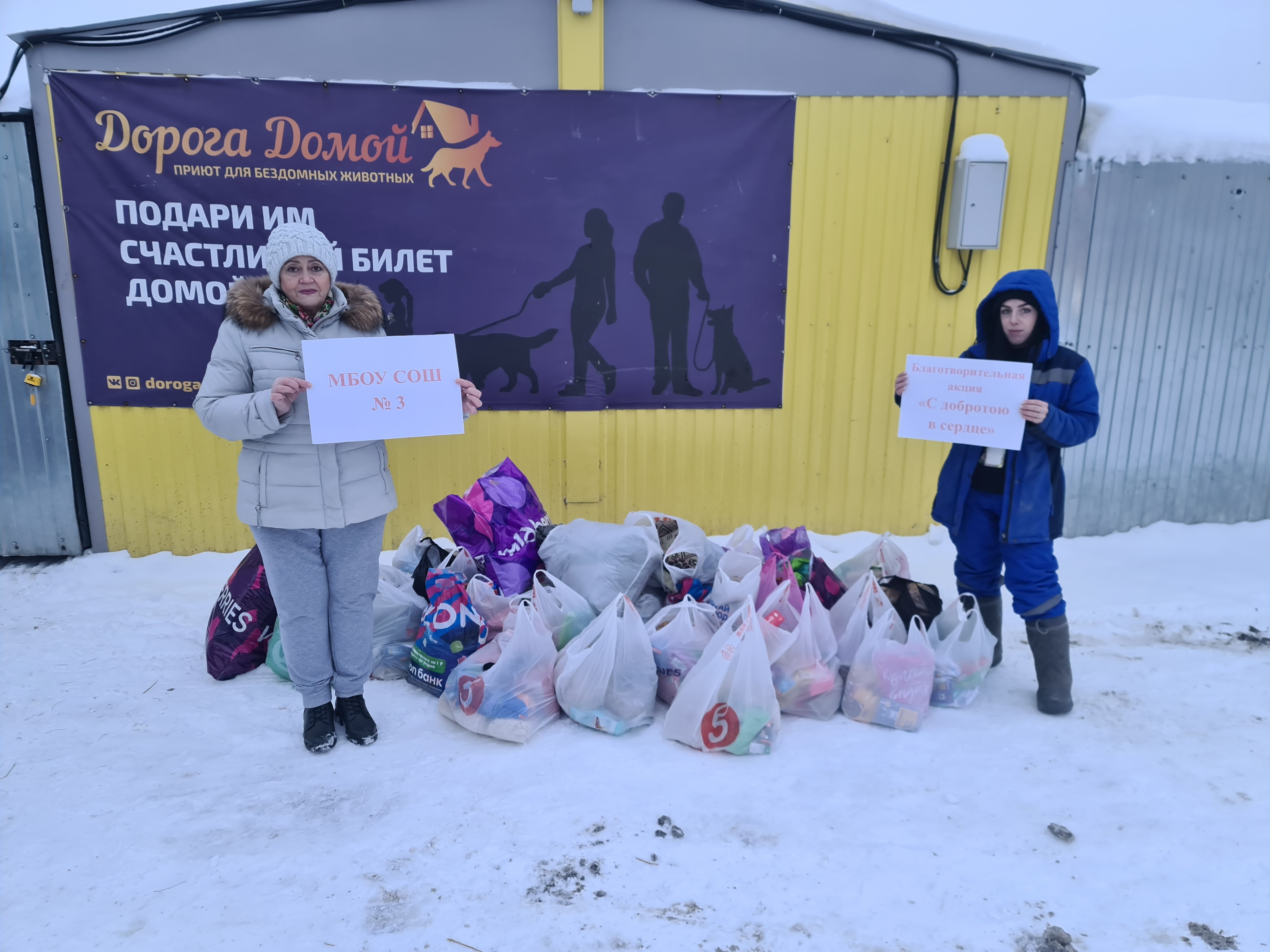 Сегодня, 04 декабря, в приют для бездомных животных «Дорога Домой» доставлен гуманитарный груз из МБОУ СОШ № 3. Это итог Благотворительной акции «С добротою в сердце», которая проходила в школе с 14.11.25 по 01.12.25: 256 килограммов кормов для собак и кошек, средства для утепления жилища животных, лекарства и медикаменты. Такие акции информационно-библиотечный центр школы проводит ежегодно и их цель – посильная помощь животным, оставшихся без хозяина и без дома.