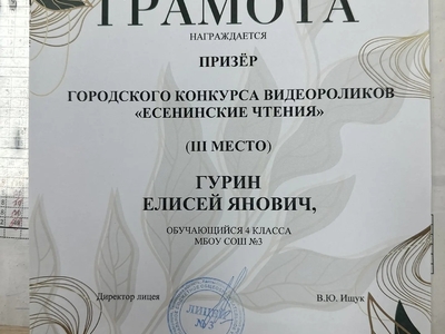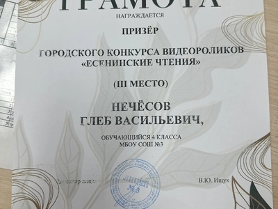 Поздравляем учеников 4«С» класса: Гурина Елисея и Нечёсова Глеба, ставших призёрами городского муниципального конкурса «Есенинские чтения»!