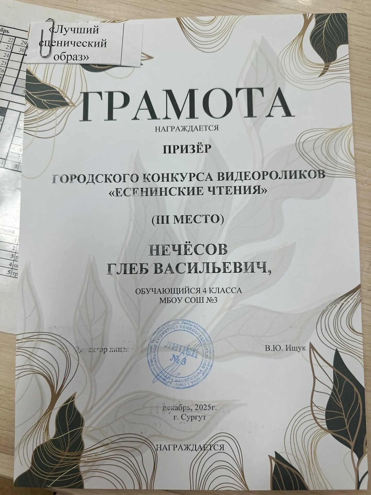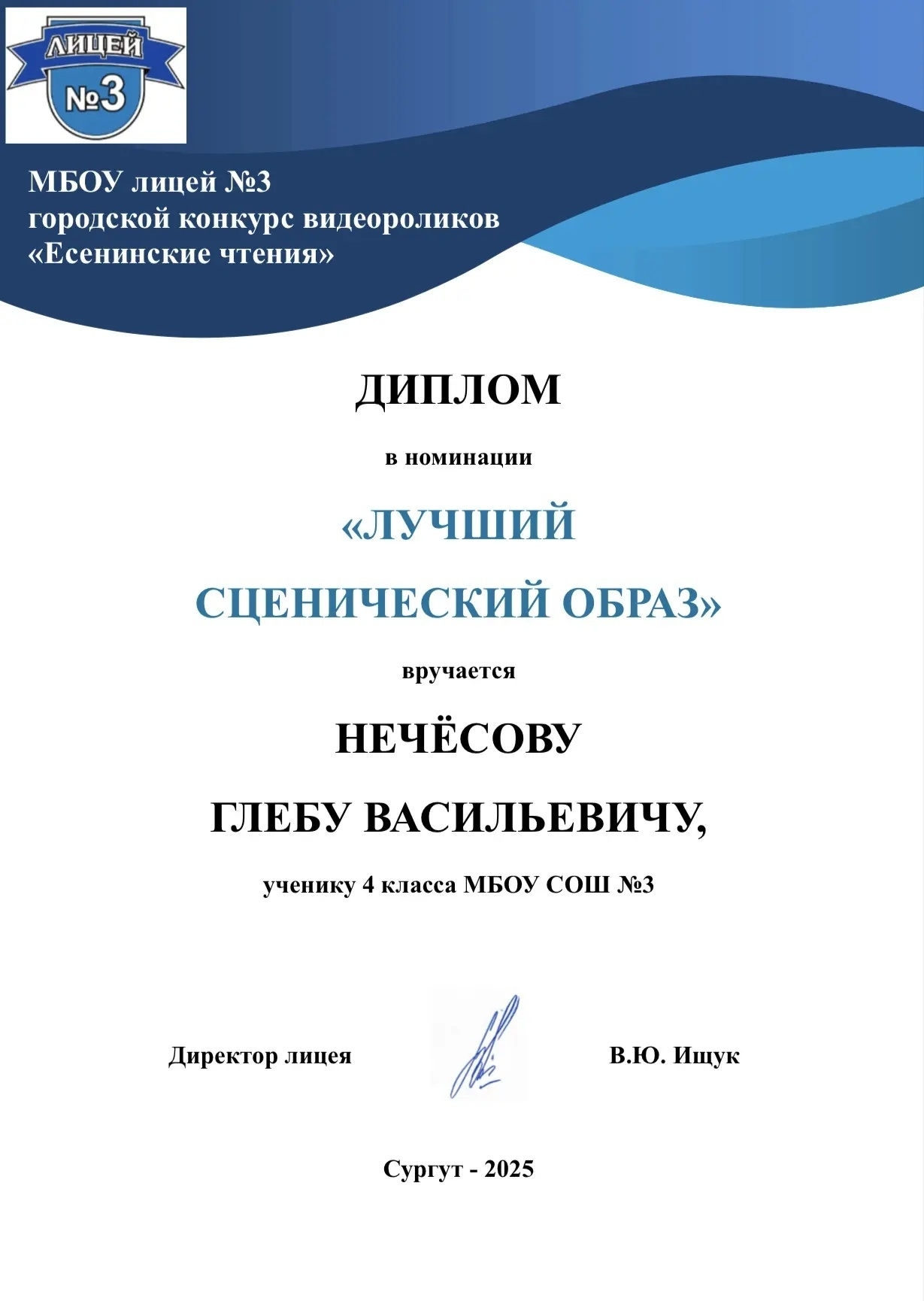 Особенную похвалу заслужил ученик Нечёсов Глеб, получивший специальную награду — «Лучший сценический образ». Его талантливая интерпретация стихотворения поразила всех присутствующих глубиной чувства и артистизмом исполнения.